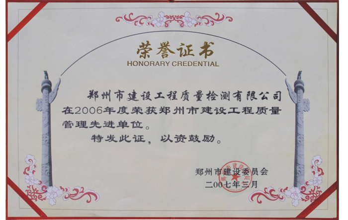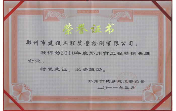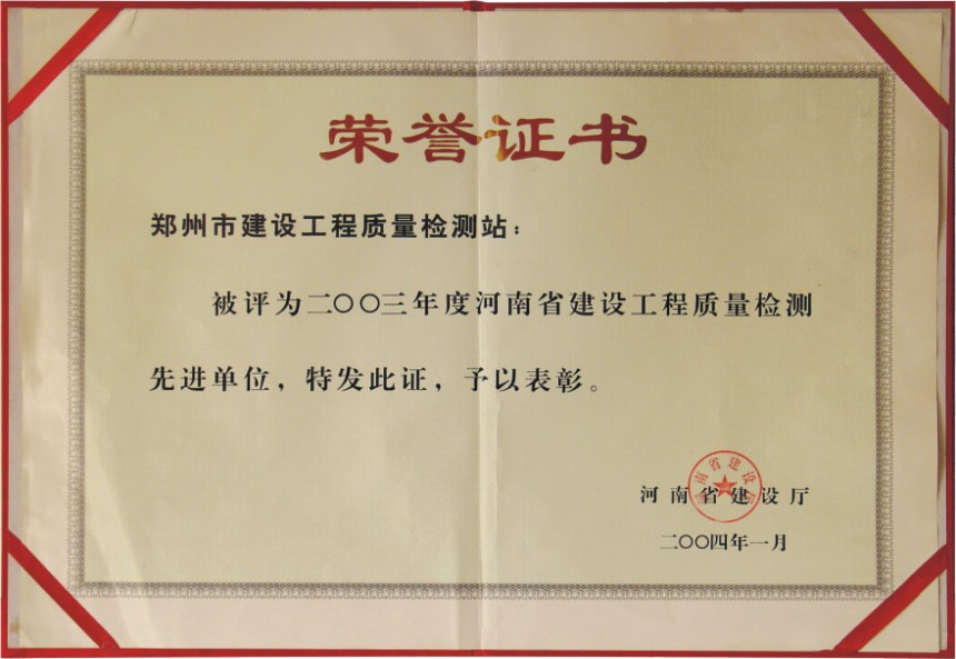 喜訊!我司榮獲2023年度鄭州市城鄉(xiāng)建設(shè)局工程檢測先進單位