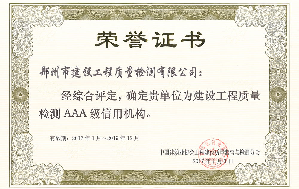 喜訊!我司榮獲2022年河南省建設(shè)工程質(zhì)量檢測行業(yè)信用示范單...